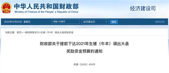 近日,财政部发布《关于提前下达2021年生猪(牛羊)调出大县奖励资金预算的通知》,知行农牧在财政部网站获悉,2021年全国共计498个生猪调出大县将获得26.90亿元奖励资金。